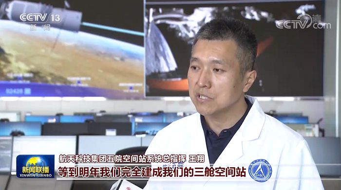 航天科技集团五院空间站系统总指挥 王翔:等到明年我们完全建成我们的三舱空间站,中国的航天员将常驻在太空。我们非常有幸能伴随着国家的发展进步,来推动航天强国的建设,让我们的五星红旗在太空中熠熠生辉。