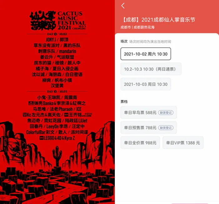 以音乐节为例,今年“五一”期间,星巢秘境音乐节曾因888元的单日票引发热议,而到了国庆假期,成都仙人掌音乐节再次刷新纪录,单日价格已经达到588、788、988、1388元。