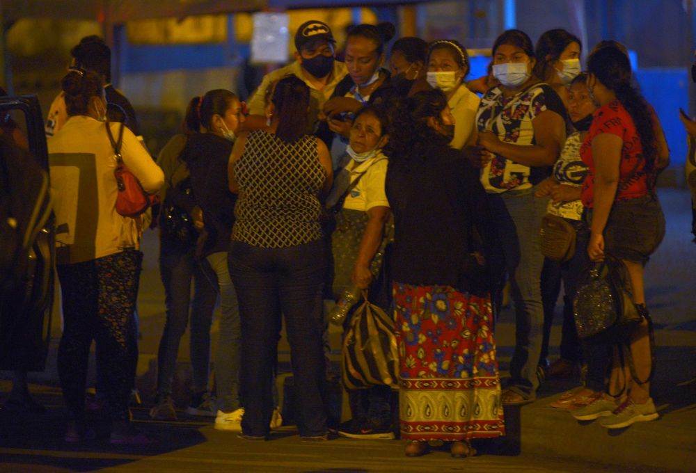 ↑9月29日,囚犯亲属聚集在瓜亚基尔发生暴乱的监狱外。(新华社发,马科斯·平摄)