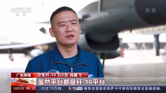 空军歼-10飞行员 肖鹏飞:虽然平台是都是歼-10的平台,从装备的性能,从战斗力整体的提升,有了一个质的飞跃,从三代机跨越到了三代半。可以说是国之重器,特别是它这些武器,以及它的操纵,更人性化,而且更贴近于实战。