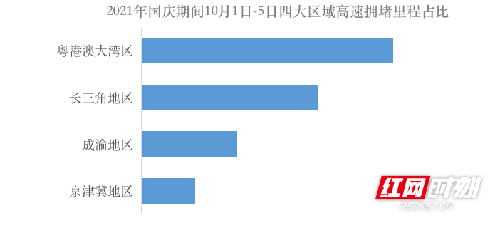 2021年国庆期间10月1日-5日四大区域高速拥堵里程占比。