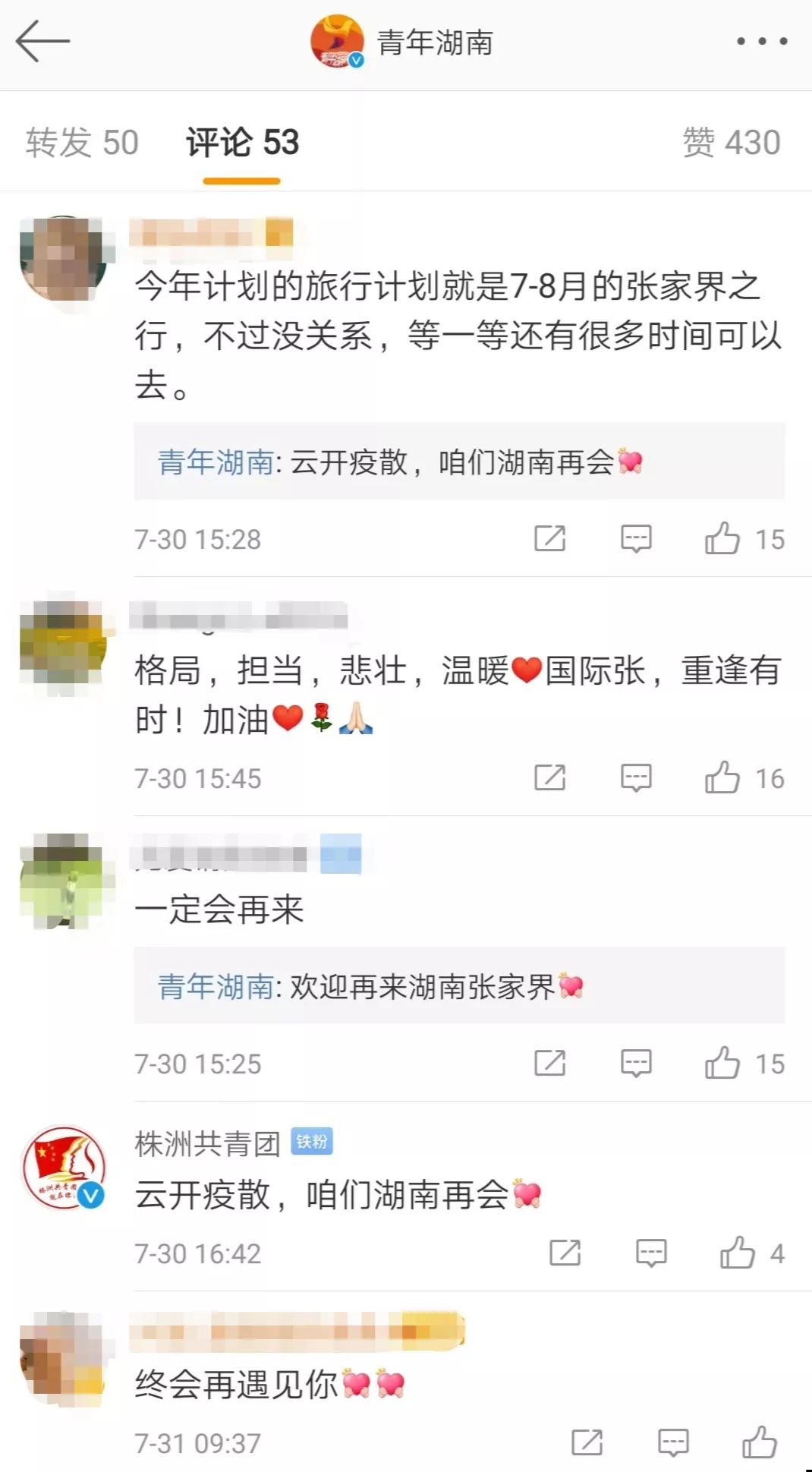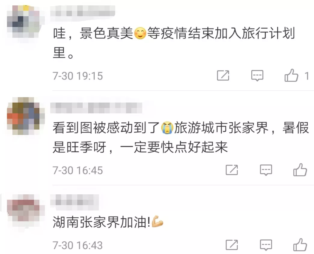 “我们欠张家界一张门票”“疫情过后我们组团游张家界”……