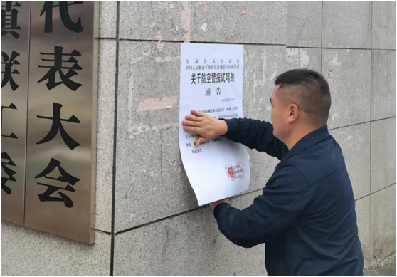 (张贴防空警报试鸣日活动公告。 通讯员 摄)