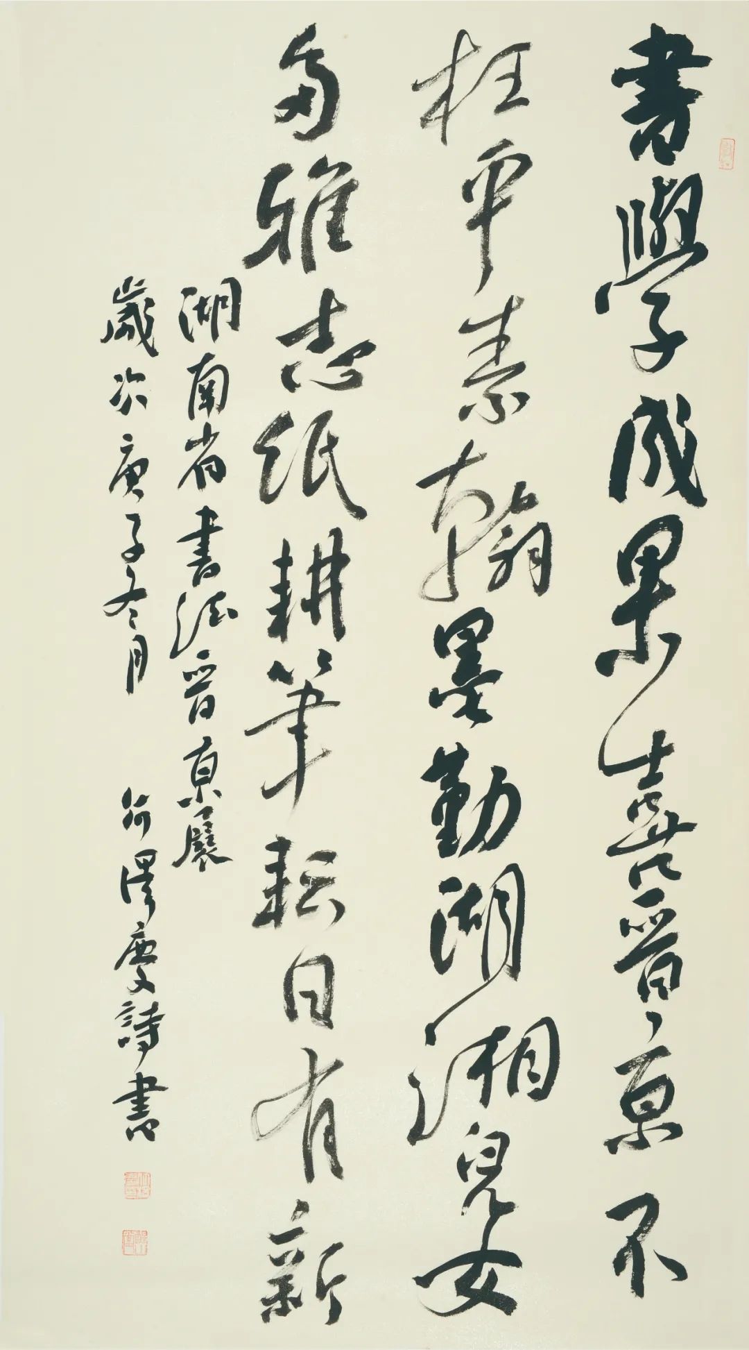 中国书法家协会分党组书记、驻会副主席李昕代表中国书法家协会对湖南书法晋京展的成功举办表示祝贺,对湖南书法事业的蓬勃发展,取得的成绩表示肯定。近年来,湖南书协的工作先后荣获中国书协先进集体,连续六年荣获中国书协“送万福进万家”先进集体,第十二届全国书法篆刻展先进组织集体等荣誉。湖南短短几年在承办了全国第四届草书展、第十二届全国书法篆刻展(楷隶)的同时,还举办了“湖湘千年书法大展”、第七届全省书法篆刻展,第一、第二届全省中青年书法展,第六、第七届新人新作展,以及篆、隶、楷、行、草、篆刻等专业单项展,有效地激发促进了湖南省书法创作整体水平的快速提升。湖南省书协还与湖南省书法院一道抓学术重理论,对湖南书法名家、名作进行系统的学术研究。组织举办了“全国褚遂良书学研讨会”“湖南省首届湖湘书风学术研讨会”“中国简帛书法艺术研究工程”等学术项目。组织了五次大规模的会员轮训,举办了24期“书道湖湘”大讲堂,也积蓄起了湖南高质量发展的新动能。他希望“书法湘军”扎根于湖湘文脉与时代精神的厚土潜心耕耘,做有信仰、有情怀、有担当的新时代书法工作者,用心、用情、用功去抒写这个伟大的时代。