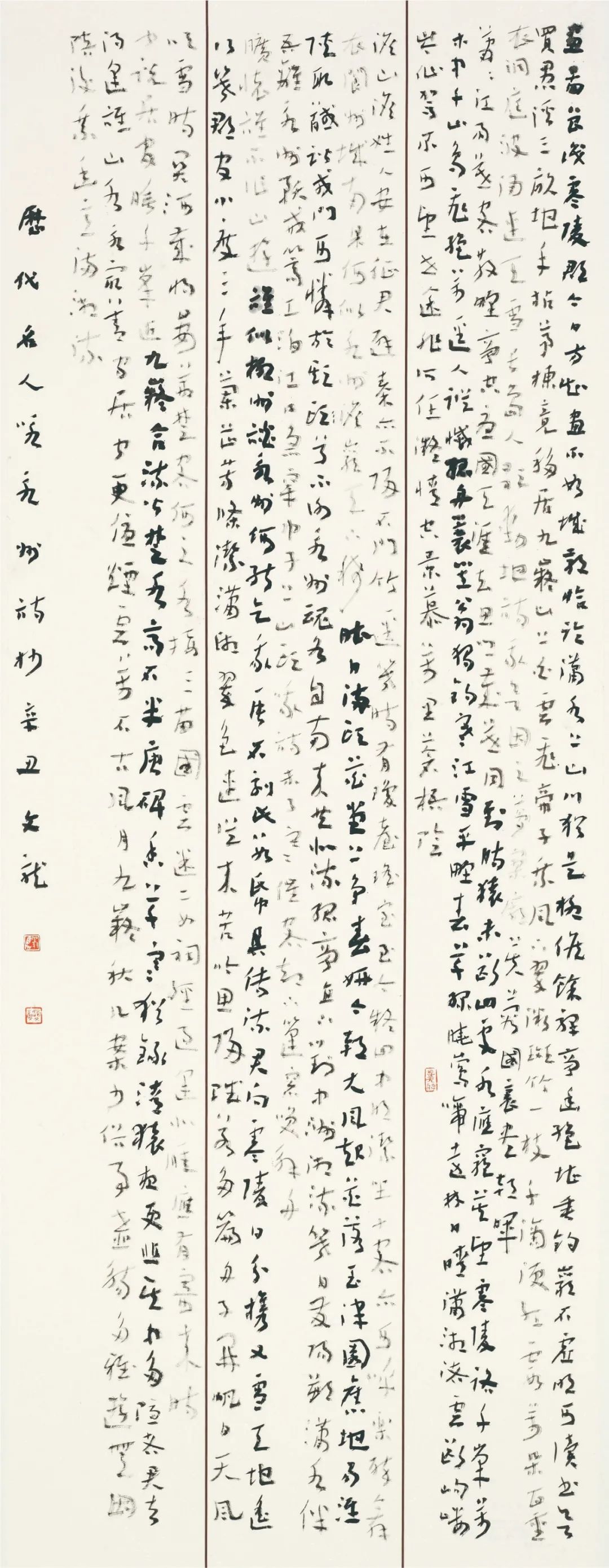 本次展览从2018年策划启动,先后六次组织专家评稿审稿改稿,到2021年10月22日开展,历时三年多。2019年与十二届国展同时就在长沙举行了预展,之后安排了四次赴京开展的时间,都因疫情原因而改变。这是“书法湘军”阵容最强的展览,动员组织了全省大部分中国书协会员和多次上国展的作者参与投稿。从中评选出入展书法作品125件,篆刻作品20件,特邀作品21件,共166件。入展作者涵盖老中青三代书法家,其中最大年龄的作者已有86岁,最年轻的刚刚20岁出头。