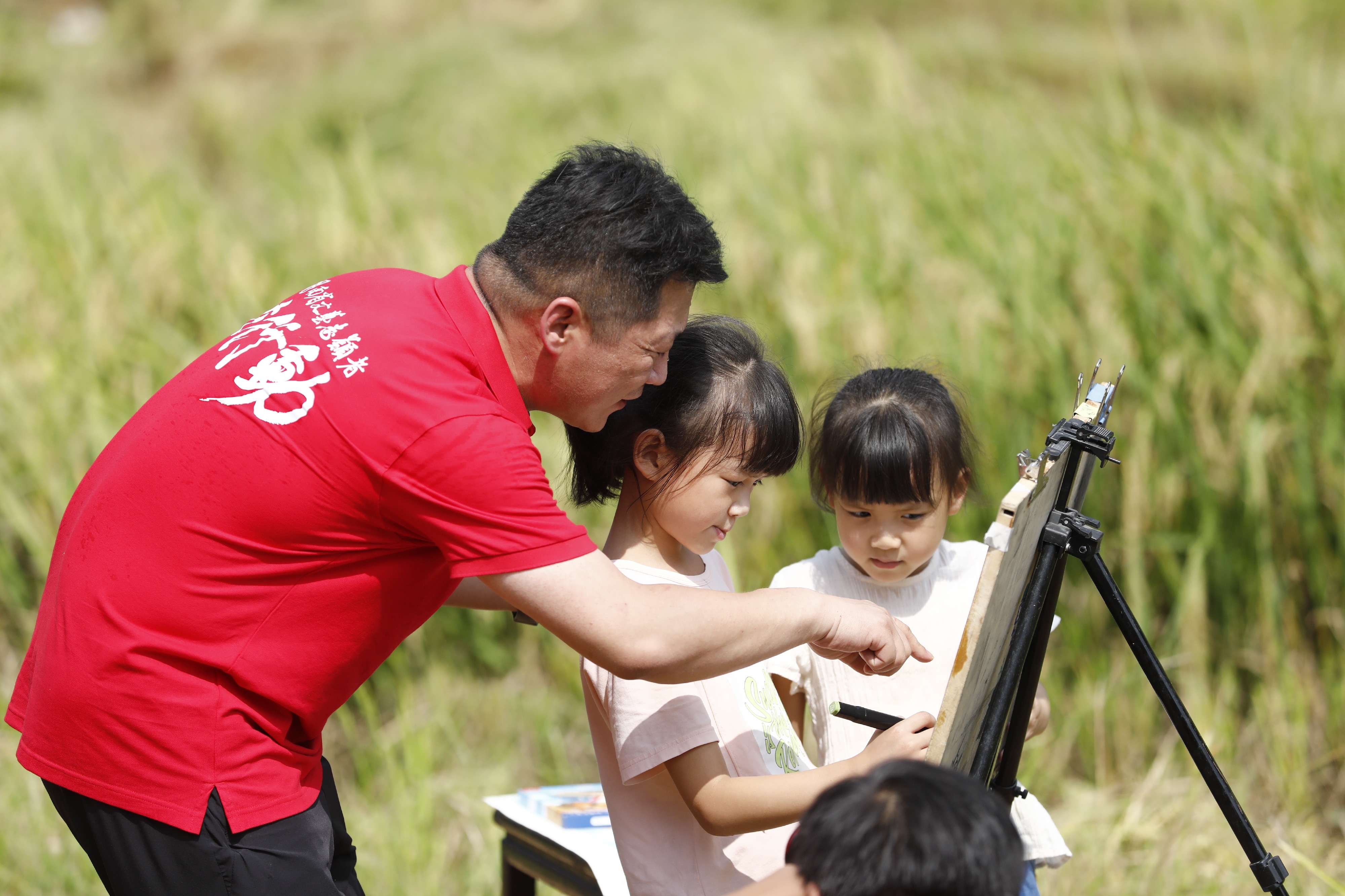 在郑家坳村的夫妻农场,艺术家们参观了农场的发展面貌,详细了解了乡村农业发展带给农民的影响,品尝了新产出的农产品,与农户面对面、手拉手、心贴心,畅谈着丰收的喜悦和未来的发展。相声演员大兵、熊壮等还通过直播的方式对当地农产品的宣传推广提供了力所能及的帮助。在长芝村,文艺志愿者体验了桃江“五道茶”,这是热情好客的桃江人民招待贵客最隆重的仪式。相声演员大兵、熊壮等和农民兄弟一起晒谷子、筛谷子,艺术家们极大的劳动热情配合着略显笨拙的动作,逗得农民朋友开怀大笑;二人台表演艺术家王占昕和青年演员王舜体验了桃江擂茶的制作后,甩着酸痛的手臂感叹一茶一饭得来不易;一些文艺志愿者还与和村民一起做起了南瓜粑粑,虽然远隔千里又来自不同的民族,但大家切南瓜、倒米粉,你和面、我印模,忙得不亦乐乎。此外,文艺志愿者还带领乡村留守儿童在田间作画,只见远山如黛稻田金黄,白墙黑瓦的民居点缀其间,轰隆隆的收割机在稻浪中来回穿梭。随着一车又一车稻谷源源不断地运到屋前,村民们脸上灿烂的笑容像花儿一样绽放,一幅美丽乡村丰收图在天地间生动铺展。文艺志愿者们体验了桃江农业生产生活和民俗风情,开展了一系列的文艺互动和辅导交流活动。