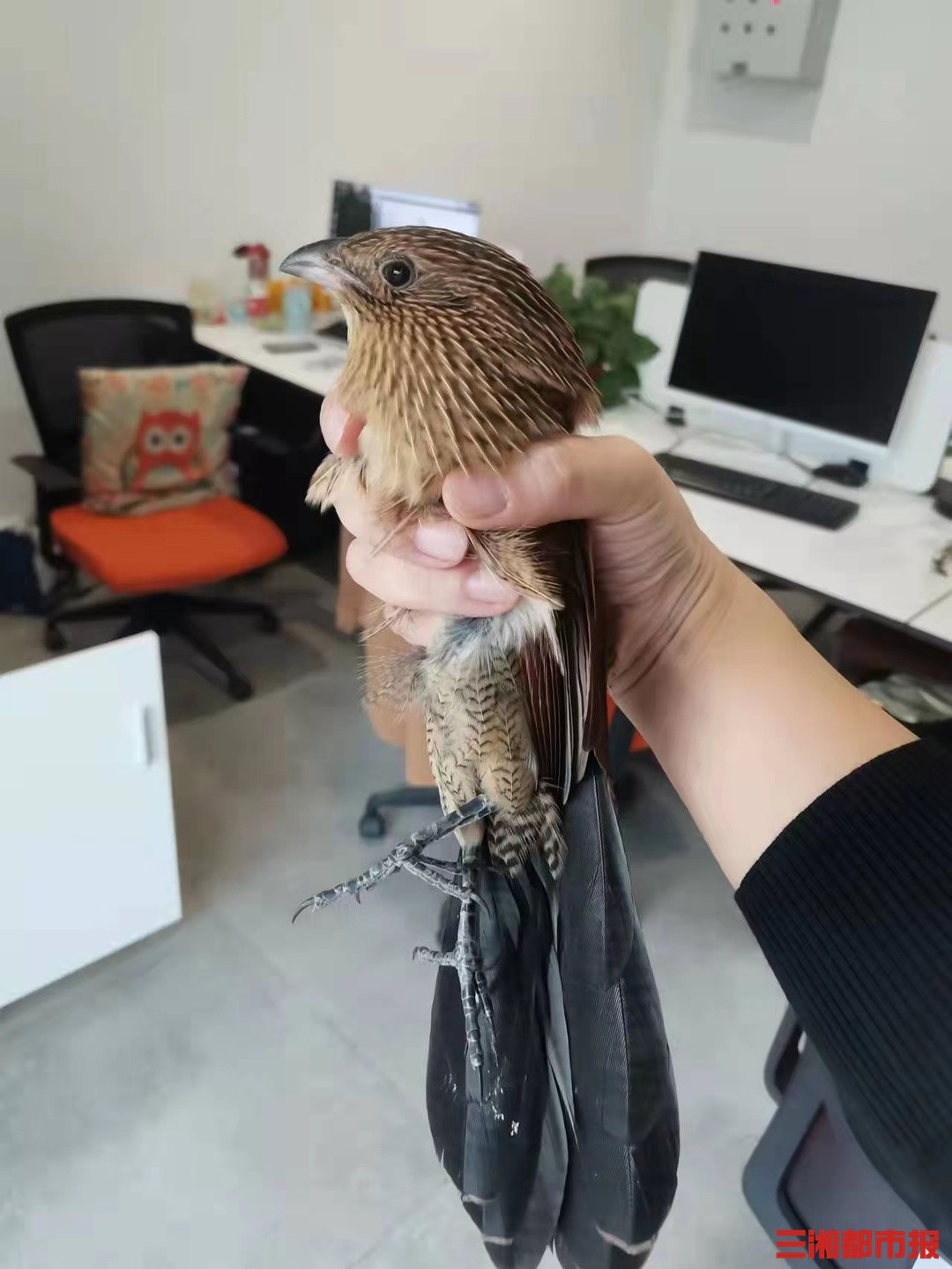三湘都市报·新湖南客户端10月27日讯(全媒体记者 周可)10月26日下午5点左右,长沙高桥大市场一办公楼的电梯里,江平“偶遇”了一只飞不动的小鸟。经网上查询,他发现这竟可是国家二级保护动物小鸦鹃。