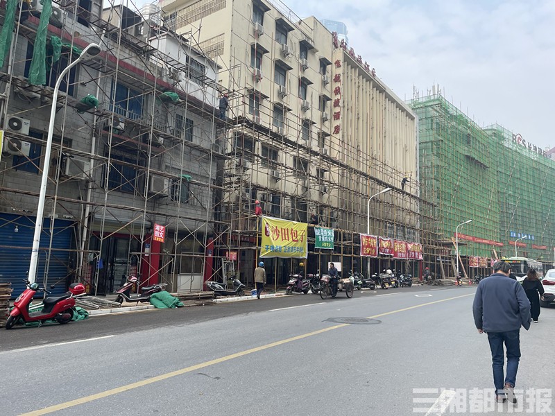 今天上午,三湘都市报记者走访建湘路解放路口至人民路口路段看到,道路两侧设有围挡和立架,施工人员正在对建筑物立面和人行道进行改造施工。尽管施工对沿街商铺有一定影响,但这段长约500米的路段上,珠宝、餐饮、零售商店不一而足。