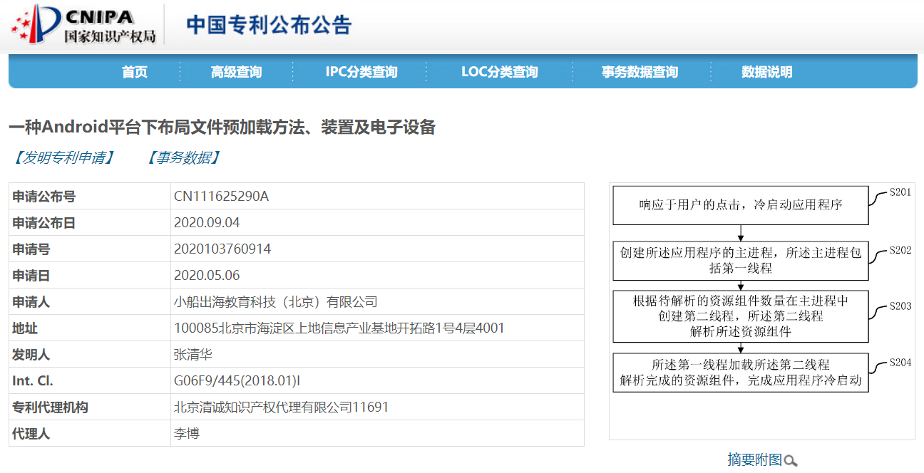 在手机上重新打开一个应用程序,比把应用程序从手机后台切换到前台要慢呢?从技术上说,应用程序从关闭状态到打开状态的过程叫做冷启动。近日,作业帮公开了“一种Android平台下布局文件预加载方法、装置及电子设备”的发明专利,能够解决应用程序冷启动存在的加载过程占用内存高、页面加载效率低、用户体验效果差等问题。