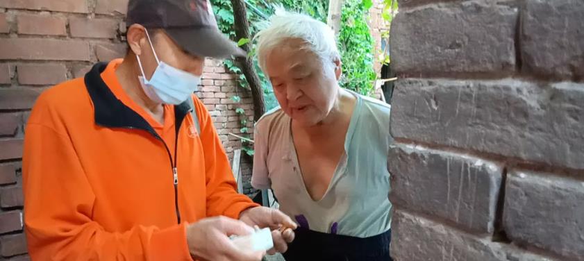 北京市西城区什刹海街道综合维修人员为辖区内空巢老人检查接线板是否存在漏电问题。受访者供图