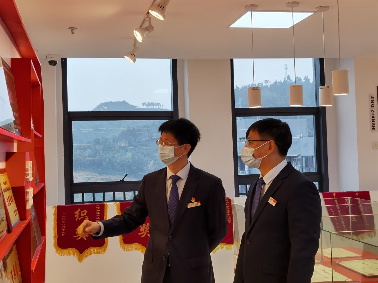 在安化农商银行党委书记、董事长谌灿球引导下参观了该行营业部厅堂布局、总行办公大楼的功能分区情况,详细介绍了党建室、活动室、荣誉室、阅览室等企业文化建设情况。随后双方召开了交流座谈会。