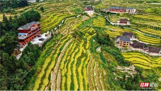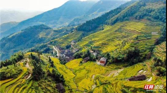 在娄底新化紫鹊界,千年前开垦的万亩梯田已经染上了金黄。