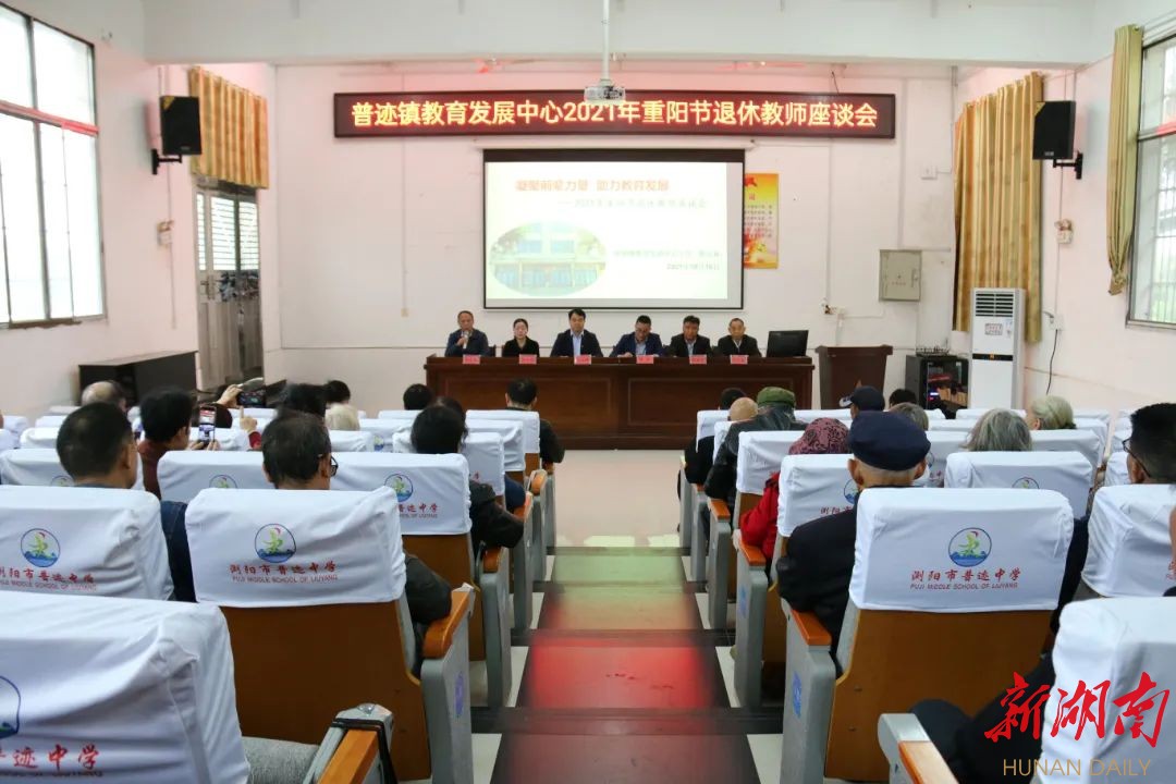 科教新报·新湖南客户端讯(通讯员 赖迎香)为了弘扬中华民族尊老、敬老、爱老的传统美德,进一步做好关心退休老教师的工作,10月16日,浏阳市普迹镇教育发展中心组织退休老师们齐聚普迹中学多功能会议厅,参加2021年重阳节退休教师座谈会。会议由普迹中学工会主席钟丛军主持。