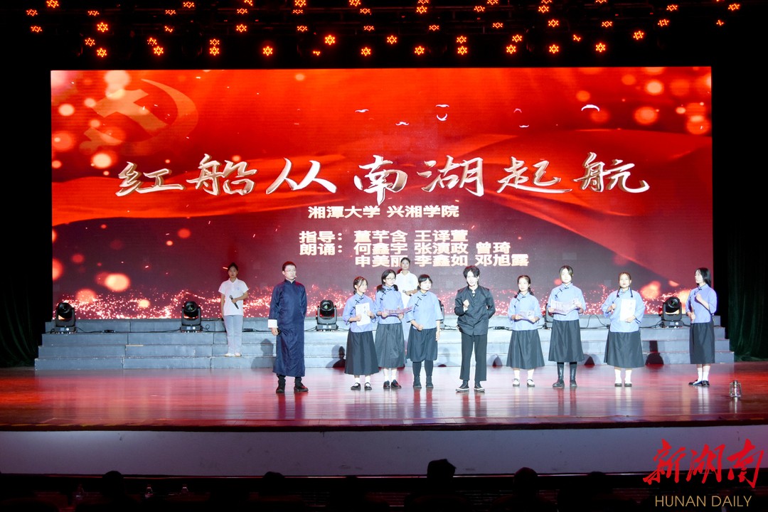“百年风华赞辉煌,激昂旋律泪飞扬。红色基因永赓续,诵读中国又启航。”在观看完学生们的精彩演出后,湘潭大学副校长刘建平登台即兴赋诗,并为湘大学子点赞。他说,朗读者活动主题好、内容好、形式好、效果好,回响了百年初心,礼赞了百年征程,相当有意义。
