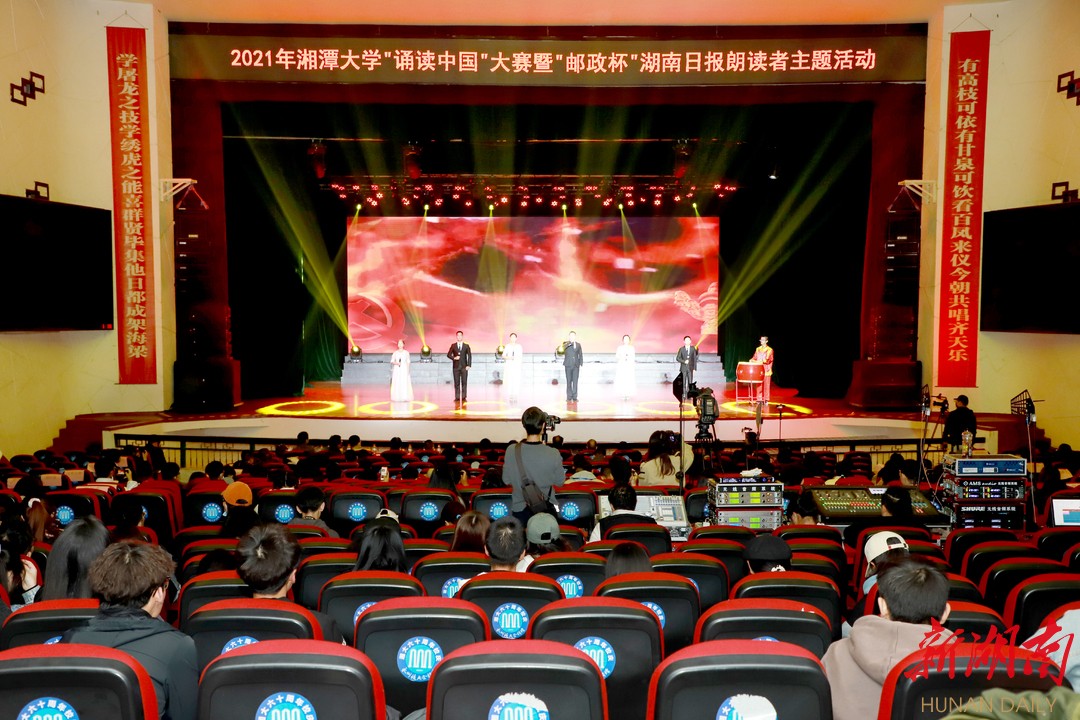 10月22日,湘潭大学“诵读中国”大赛暨2021“邮政杯”湖南日报朗读者主题活动在湘潭大学大礼堂嘹亮开嗓。本次活动由湘潭大学与湖南日报共同主办,湘潭大学播音与主持艺术协会承办,来自全校21个学院的学生能量充沛,全情投入,为秋意渐浓的校园诵读着关于红色的心声。