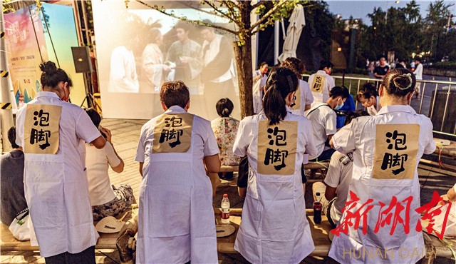 10月1日,在网红餐饮店长沙文和友海信店门口,记者看到不少“吃客”正在排队等候。令人意外的是,这些“吃客”在就餐前,竟被安排洗了个脚,该饭店在顾客排队时推出了可享受免费洗脚、按摩、看电影等服务。