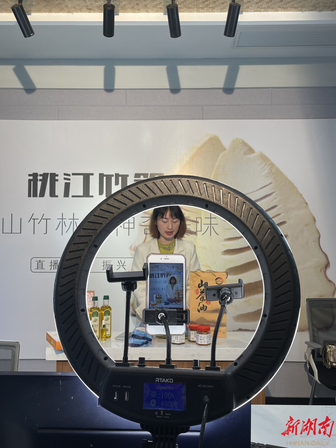 走进直播馆二楼,莫飞虎指着设施齐全的直播间自豪地说:“主播们每天都在这里为本村和桃江县其他乡镇的农副产品直播带货。”