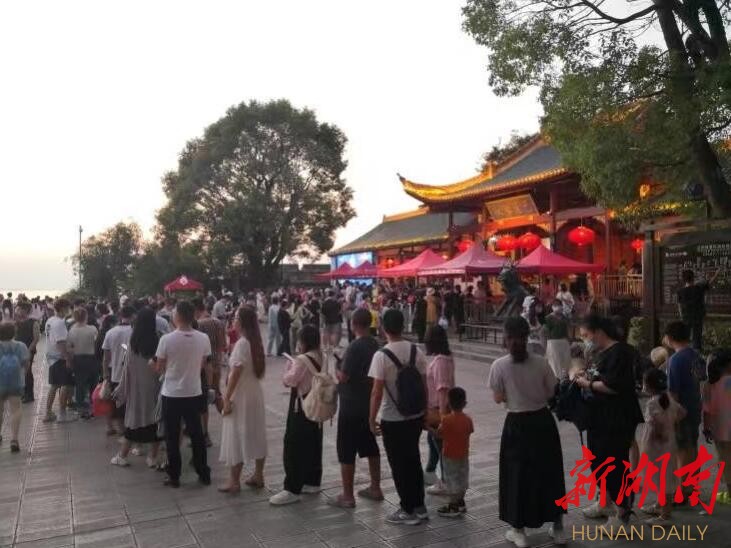 白天登岳阳楼,观洞庭水,游君山岛,晚上汉服夜游,赏辉煌光影,听岳阳故事……国庆长假期间,岳阳楼君山岛景区根据游览图定制了沉浸式演绎节目,白天和夜间节目穿插,为国庆节日增添一份乐趣,吸引了众多游客畅游岳阳,夜游活动甚至一票难求。