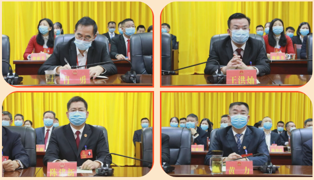 大会举行了向宪法宣誓仪式,新当选的同志左手抚按《中华人民共和国宪法》、右手举拳,诵读誓词。