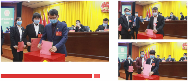 在雄壮的进行曲中,与会代表投下自己手上神圣的一票。