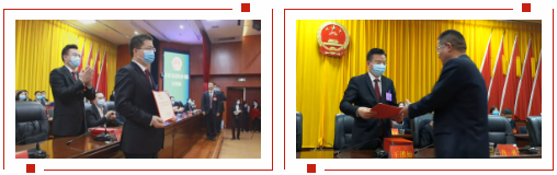 县委书记王洪灿为新当选人员颁发了当选证书。