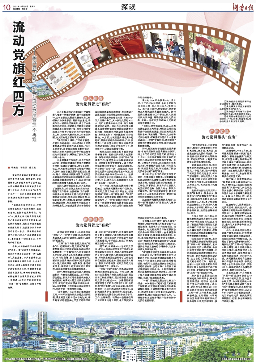 在流动党员管理上,永兴县抓住 “双报”、“一领”两个关键词,让流动党员管理真正达到“管得住、管得好、管得活”的效果。