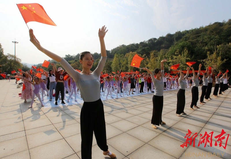 湖南日报·新湖南客户端10月4日讯(何庆辉 李加诺)10月3日,郴州市北湖区下湄桥街道新时代文明实践所,在龙女温泉景区开展“童心向党 我爱你祖国”庆国庆快闪活动。