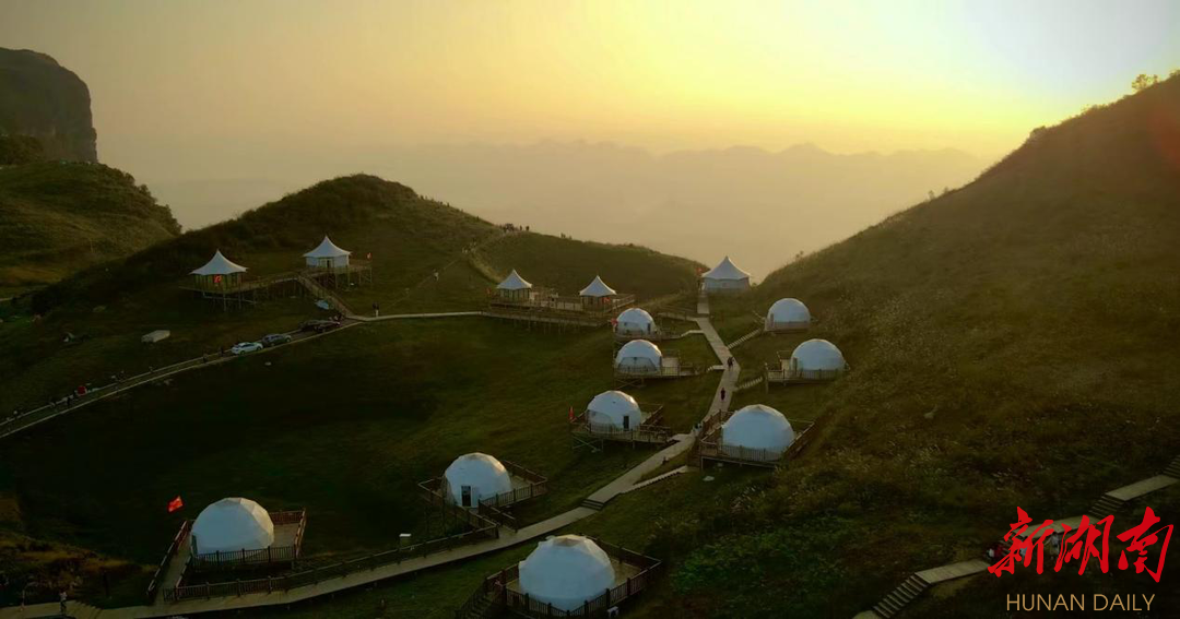 近年来,龙山县充分挖掘该景区日出、云海、绝壁悬崖等优质特色旅游资源,开启了八面山生态文化旅游建设的加速度,围绕“多元住”,先后建设了以星空帐篷、野奢帐篷、轻奢帐篷、自助帐篷、悬崖酒店、房车酒店、特色民俗等,满足不同游客群体对住宿的多元选择和体验需求。