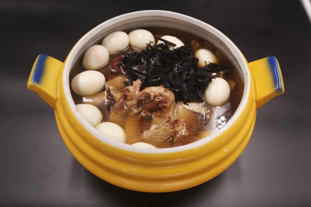 土家岩耳蒸盆源于土家族喜宴中的“四碟、 八碗、一箍子”中的一箍子,内含土鸡一只、猪肘子一个,另外配有墨鱼、香菇、鸡蛋、岩耳、生姜,经四、五个小时蒸制而成,汤鲜肉烂味道鲜美,是招待贵客的最佳菜肴。