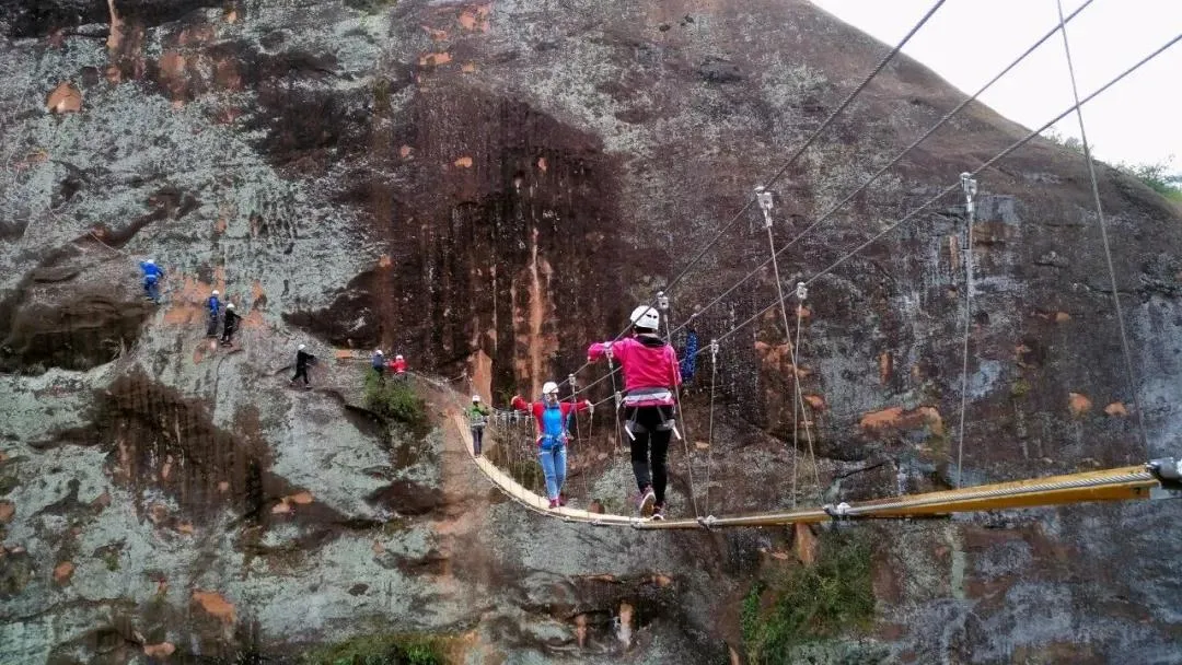 红岩岭飞拉达,位于张家界慈利县甘堰乡红岩岭,线路体验多样化,吊桥、铁索、猴桥、独木桥组合众多,且技术、体能门槛低,适合普通人群体验。