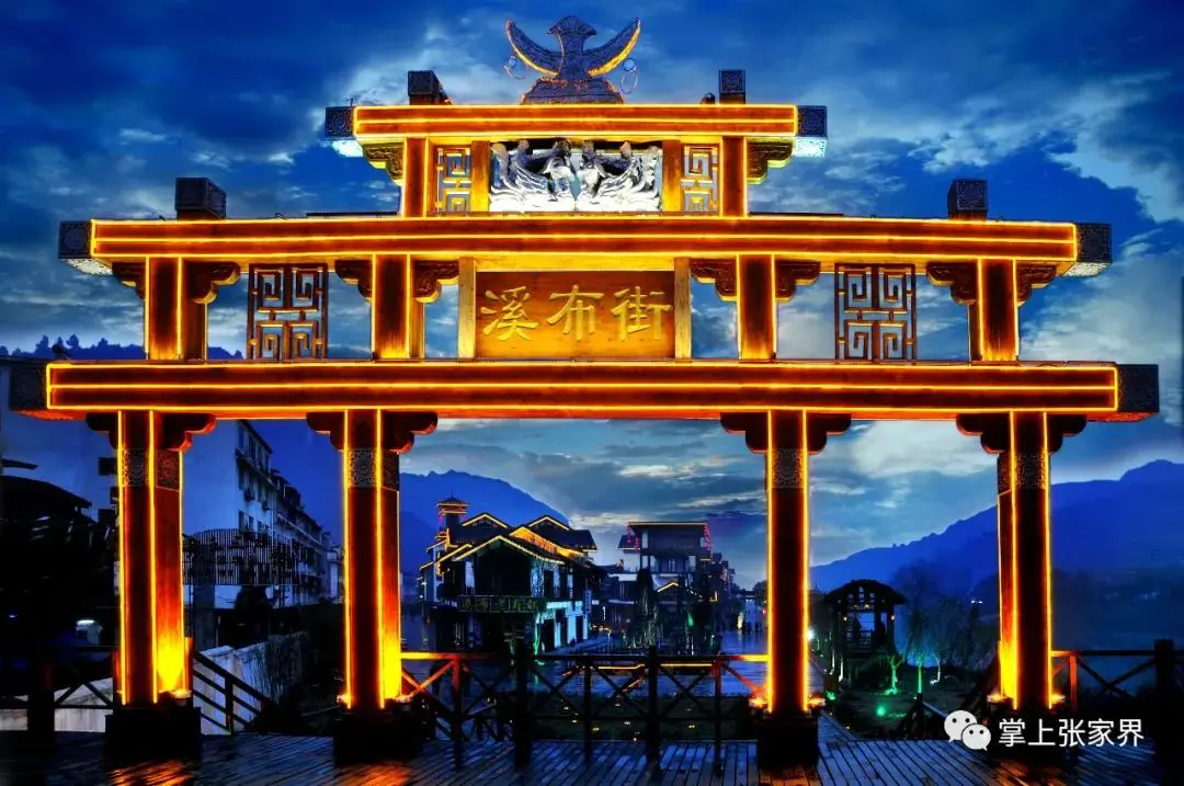 溪布老街位于张家界武陵源,有小吃、有水上酒吧、有休闲客栈、还有民俗体验创意工坊。其建筑风格以湘西土风苗韵为基调,以传统土家民居为蓝本,营造房中有院、院中有街、韵味十足的集市盛景。