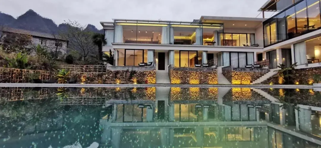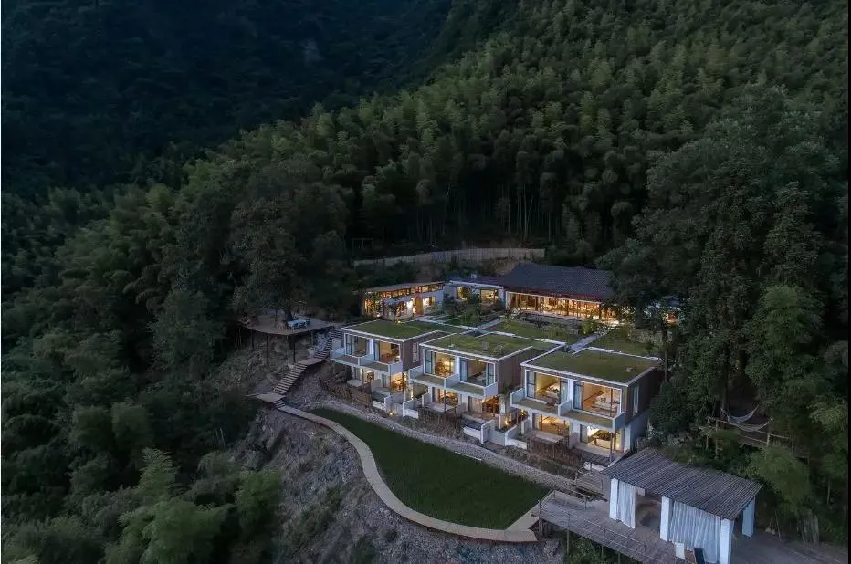 璞舍位于张家界市武陵源区龙尾巴村,毗邻张家界国家森林公园,以其三层落地大玻璃窗扬名于外。用玻璃取代钢筋水泥,窗外无边山景尽入眼帘。