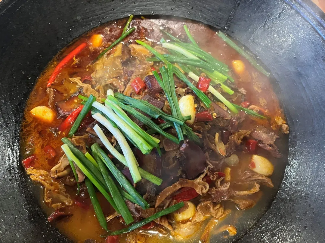 张家界三下锅以辣为主,先将基础食材以小火炖煮出香味,再加入猪肉、核桃肉、猪肚等肉类,让三下锅凸显风味。