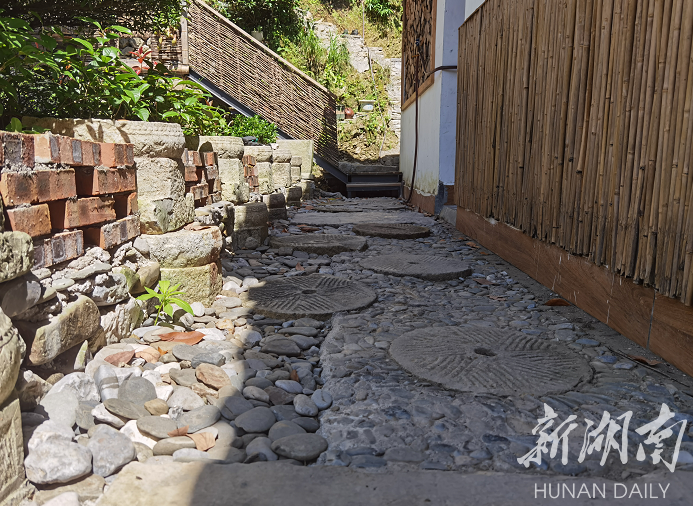 这条浓浓的乡愁小道,原材料为石头和磨盘。通讯员 摄