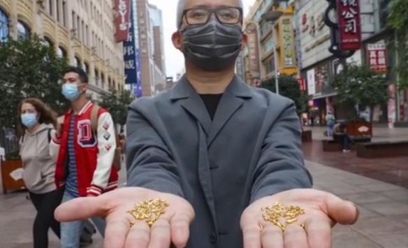 不久前,艺术家杨烨炘用500克黄金打造了1000粒纯金大米,然后一粒一粒扔进黄浦江和上海的各个角落,引发巨大争议。