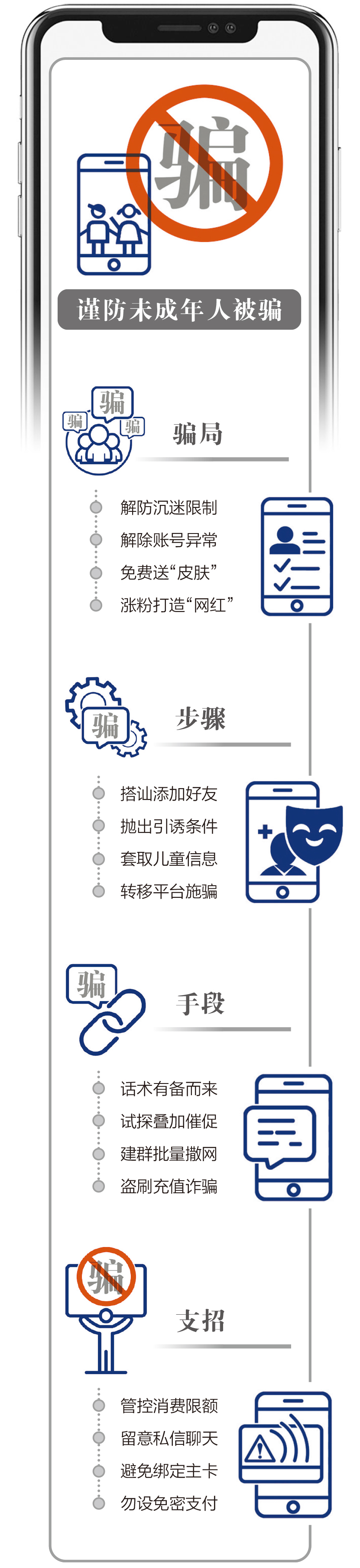 免费送游戏道具、帮助解锁“防沉迷限制”、打造人气“网红”……如今,一些网络骗子开始将违法犯罪的触角伸向未成年人。涉世未深的“神兽”被骗被坑的案例,似有增长趋势。