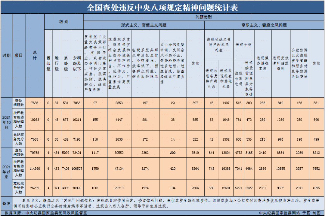 从监督检查、审查调查、巡视巡察发现和干部群众反映情况看,违规收送名贵特产类礼品问题仍禁而不绝。数据显示,今年1月至10月,全国共查处违规收送名贵特产644起,批评教育帮助和处理743人,其中党纪政务处分560人。