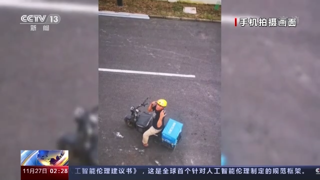张迥:一直打我们电话,接通了就挂,反复三四次。后来我们在二楼窗户喊他的时候,喊了很多声,他也没有回应,就左看右看四处张望。我闺蜜就有点生气了。他没有回应的时候,我第一瞬间就意识到,他可能是聋哑人,就第一时间就让同事下去拿外卖。