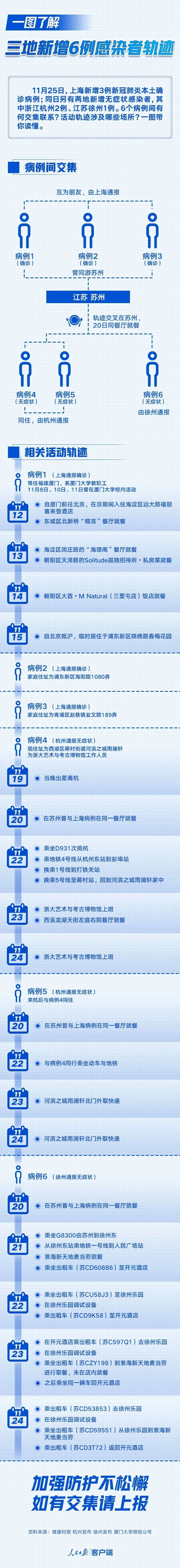 11月25日,上海市疫情防控工作新闻发布会通报3例新冠肺炎本土确诊病例,同时均有苏州市旅游史。