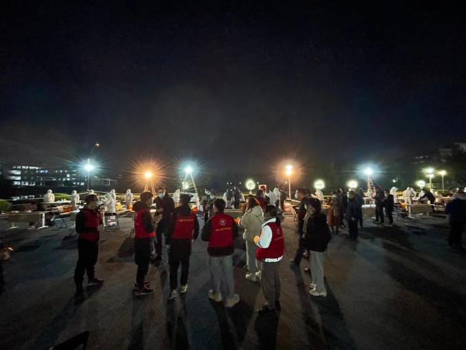 1小时,近500名学生志愿者火速集结,一个个身着红马甲的忙碌身影,为这个寒冷的夜晚增添了丝丝温暖。