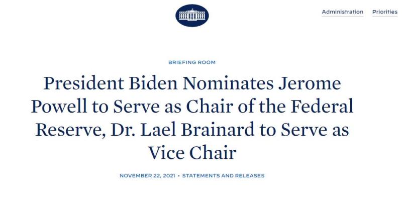 拜登当天发表声明说,今年以来,在鲍威尔和布雷纳德的努力下,美联储为促进美国就业市场复苏和经济重启所制定的政策帮助美国经济取得了显著进步,支撑美国经济度过了现代史上最严重的衰退,走上复苏之路。
