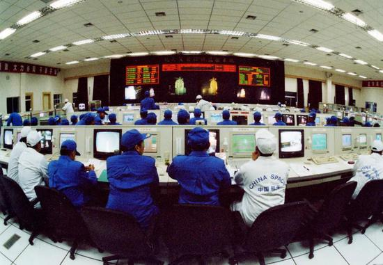 “神舟一号”发射时测发指挥大厅场景