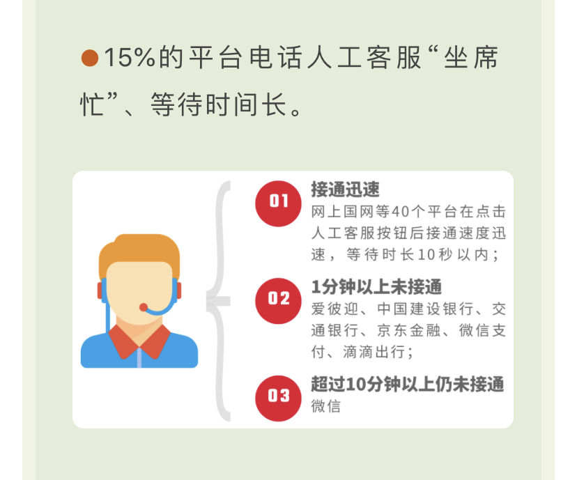 江苏省消保委发布的《数字化背景下客户服务便利度消费调查报告》揭露多个平台人工客服等待时间长。