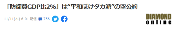 《DIAMOND》:“将防卫费提高至GDP的2%”是鹰派的空头支票
