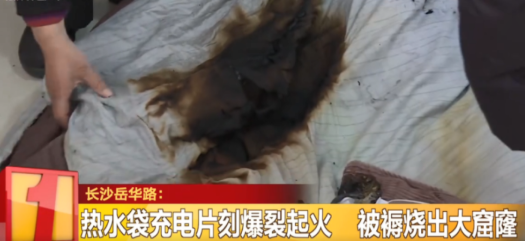家住长沙市岳华路附近的鲁女士,将刚买的热水袋插上了电,准备洗漱入睡,然而刚走出卧室门,热水袋竟然爆裂起火了。