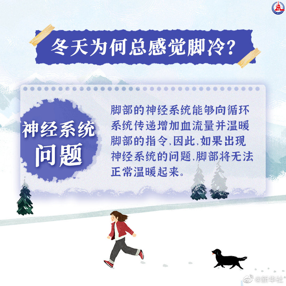 【冬天为什么总感觉脚冷?】据西班牙《20分钟》网站报道,专家指出,冬季导致我们经常感觉双脚冰凉的原因有多种,除非与更严重的疾病有关,否则这个问题并不值得我们忧心忡忡。那么,在冬季双脚持续感到寒冷的原因究竟有哪些?双脚如何保暖?赶快戳图了解!(参考消息)