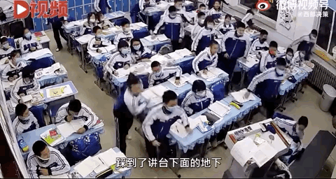 学生们见状立马放下手中的笔,