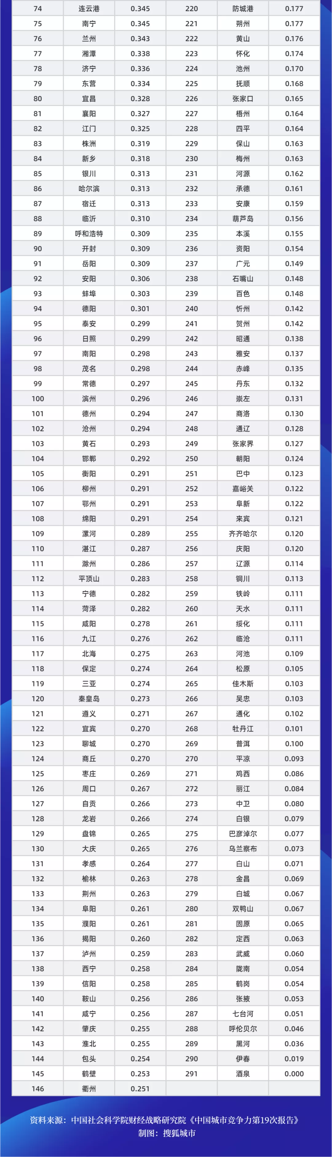11月2日下午,中国社科院财经战略研究院与中国社会科学出版社在北京共同发布了《中国城市竞争力报告No.19》(以下简称“报告”),对中国内地和港澳台地区291个城市的综合经济竞争力进行评价研究。