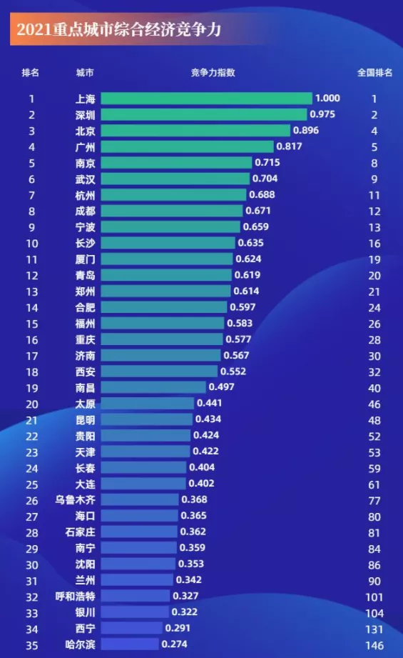 站在城市视角衡量中国经济发展,2021年国内城市经济竞争力格局发生了怎样的变化?