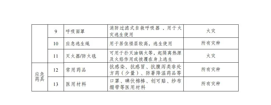 江苏省家庭应急物资储备清单(扩充版):